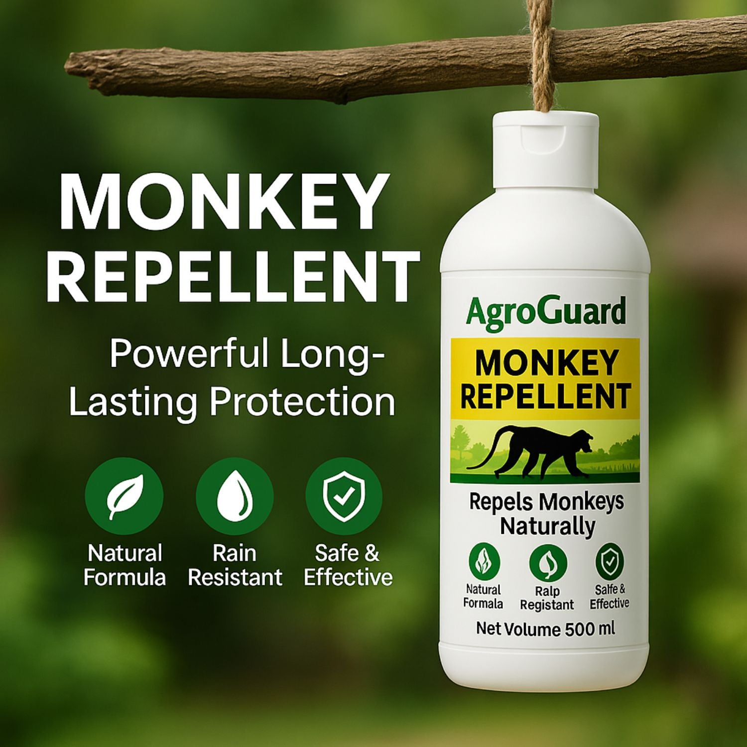 AgroGuard Monkey Repellent Spray uses high-strength natural smell technology to create a powerful odor barrier that monkeys strongly avoid.